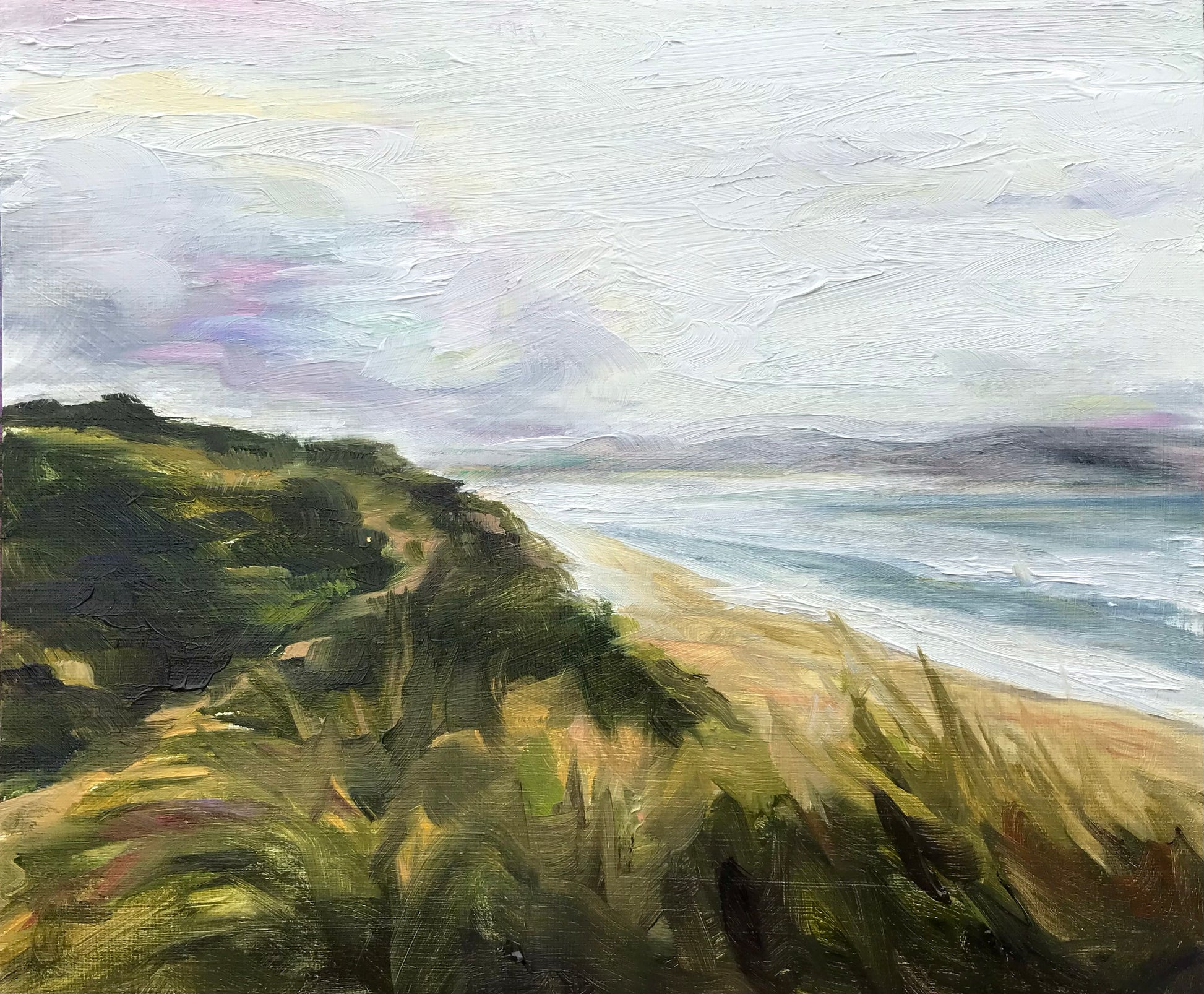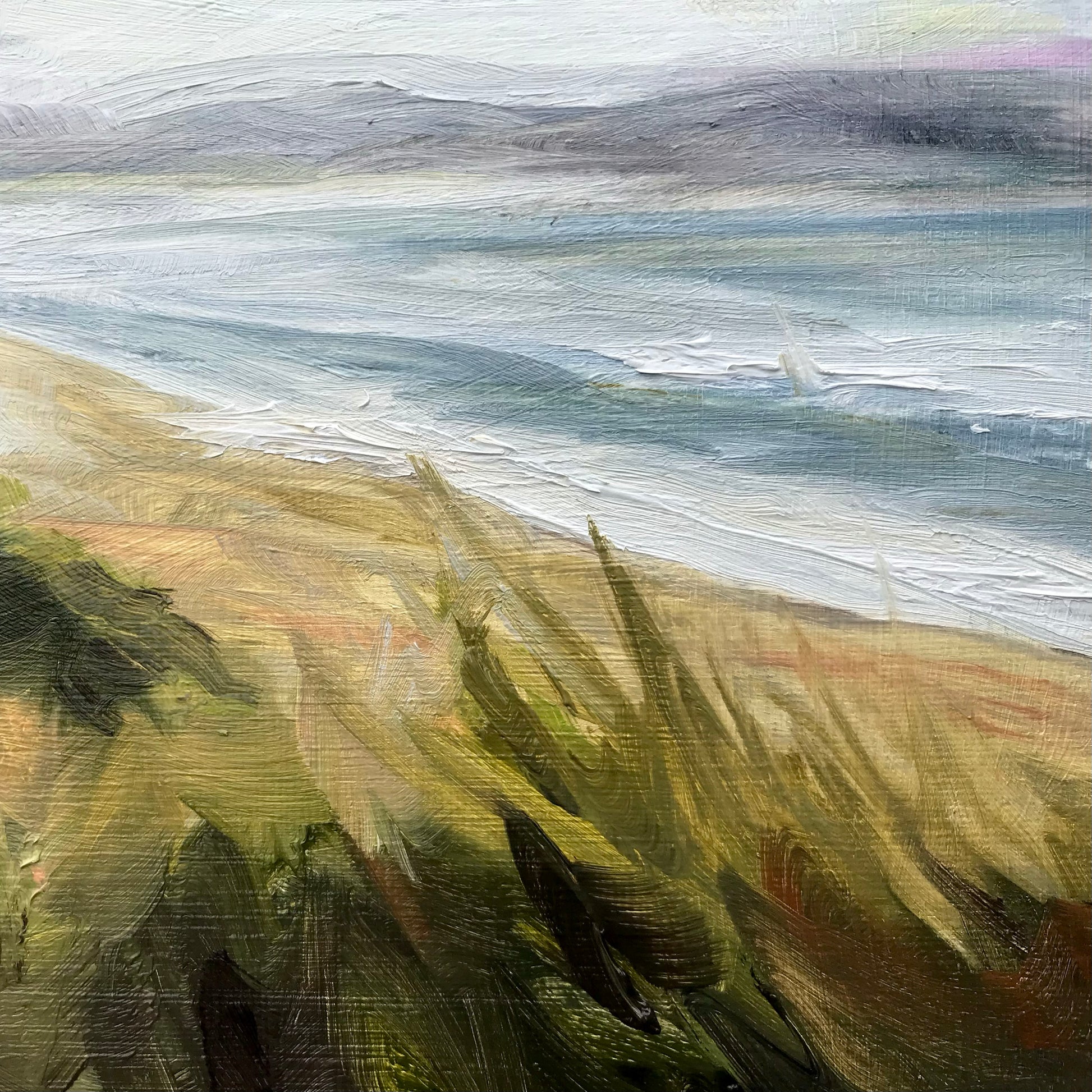 Original painting of a view across St Ives Bay from Gwithian Towens, Cornwall.